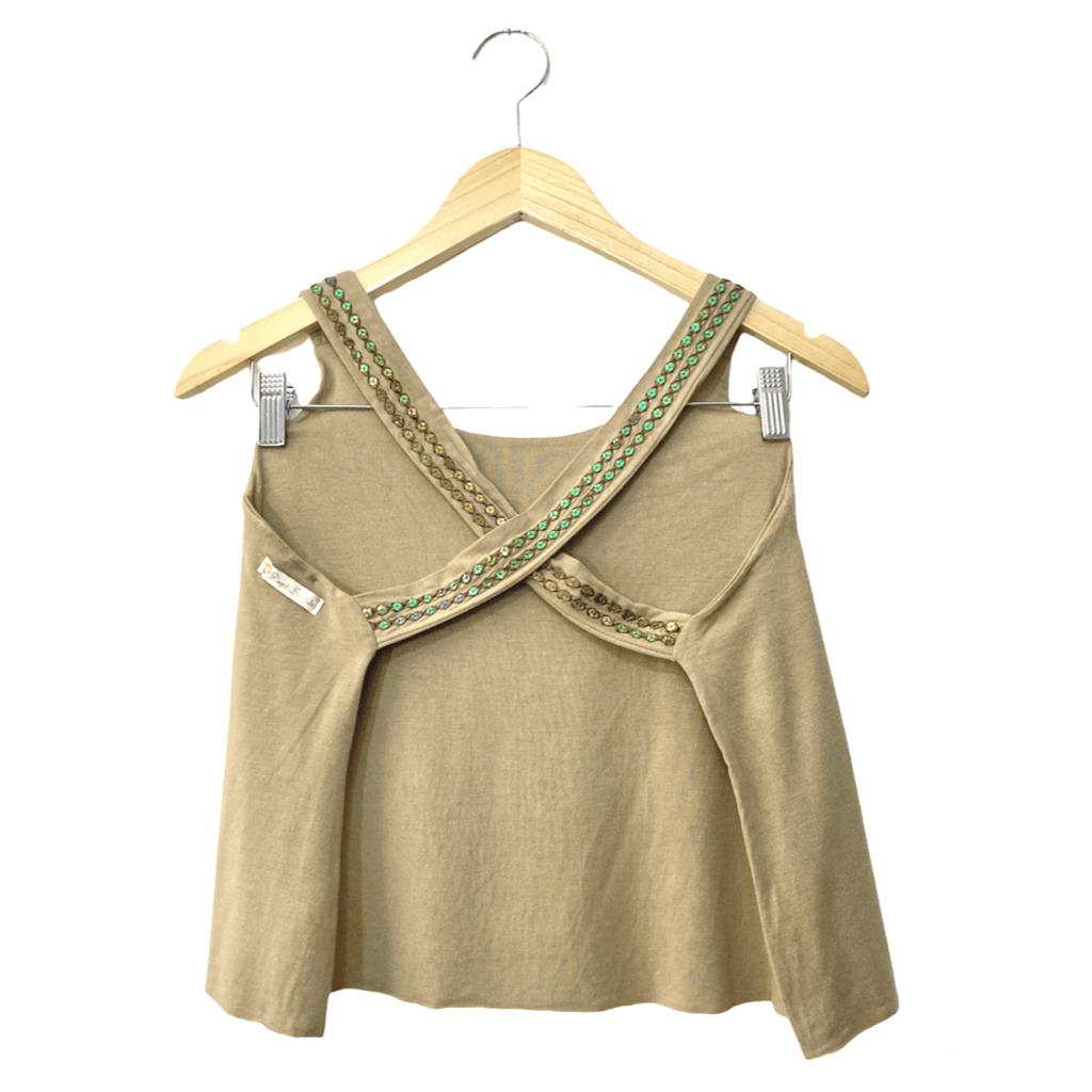 Blusa Duplo Sentido Bege Lisa com Paetês e Costas Nuas P